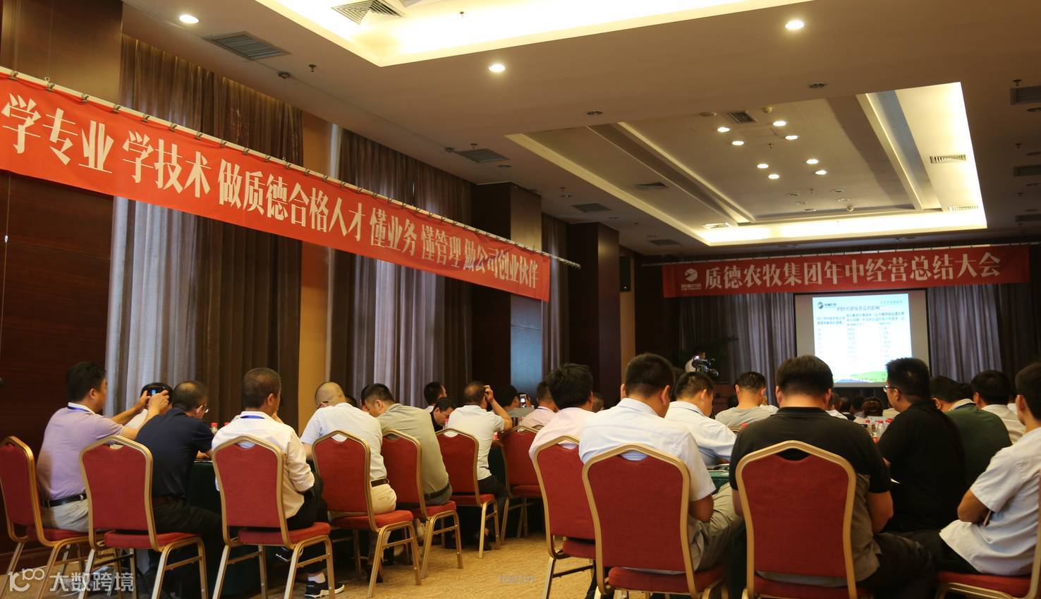 2017年5月31日,质德农牧集团在聊城市阿尔卡迪亚国际温泉大酒店召开集团年中经营总结大会。参加此次会议的有公司董事长翟长信和副总裁孙建荣、营销副总裁于光春、分公司总经理及各分公司营销主管60余人。