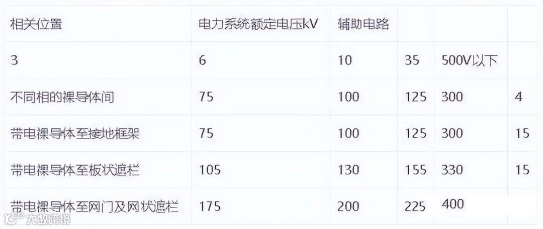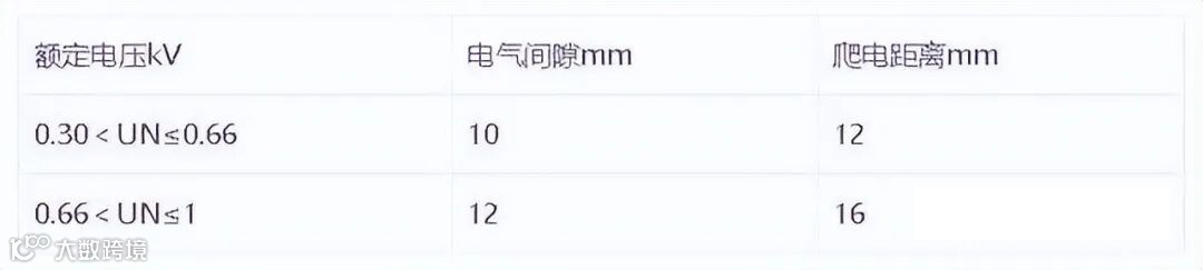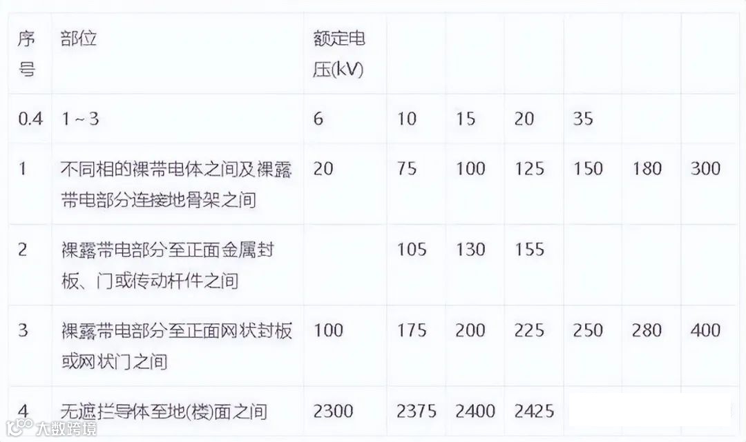 我国低压成套开关设备水平母线和垂直母线带电部件间及其对接地金属之间的电气间隙与爬电距离在绝缘电压为380V至660V,距离应不小于20mm。
