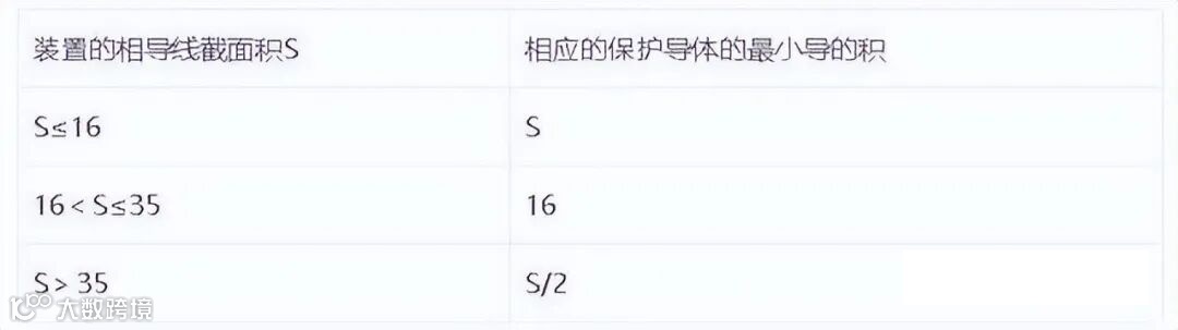 保护导体的截面按下表的规定选择。如果按表选择的导体不是标准尺寸时,应靠向标准导线值。当相导线与保护导体的材料不同时,应进行修正使之达到同一种材料的导电效果。