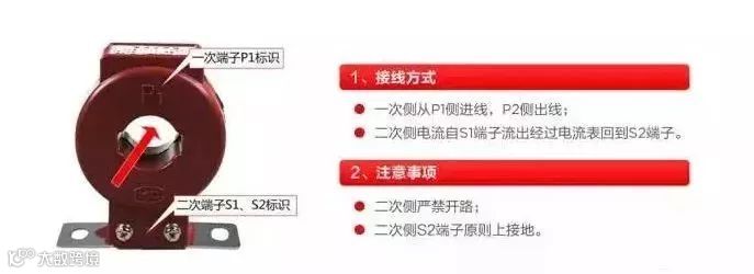 电流互感器的一次侧电流是从P1端子进入,从P2端子出来;即P1端子连接电源侧,P2端子连接负载侧。