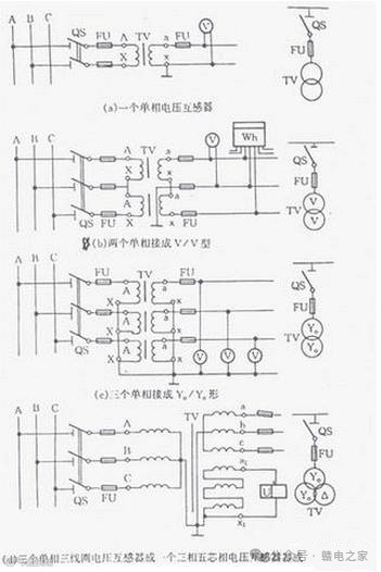 常用电压互感器的接线,电压互感器在三相电路中常用的接线方式有四种:如下图