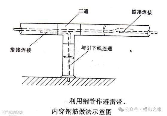 避雷带为扁钢时,搭接处底部不宜焊接,常见只焊两个边,不符合规范要求。最好是四边均焊接,以免空气进入产生锈蚀。