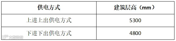 通过上述对比,我们知道在同一地区,变配电房基础条件相同的情况下,上进上出供电方式所占地库建筑层高为5300mm,下进下出供电方式所占地库建筑层高为4800mm,通过对比发现采用下进下出供电方式可减少建筑层高500mm。