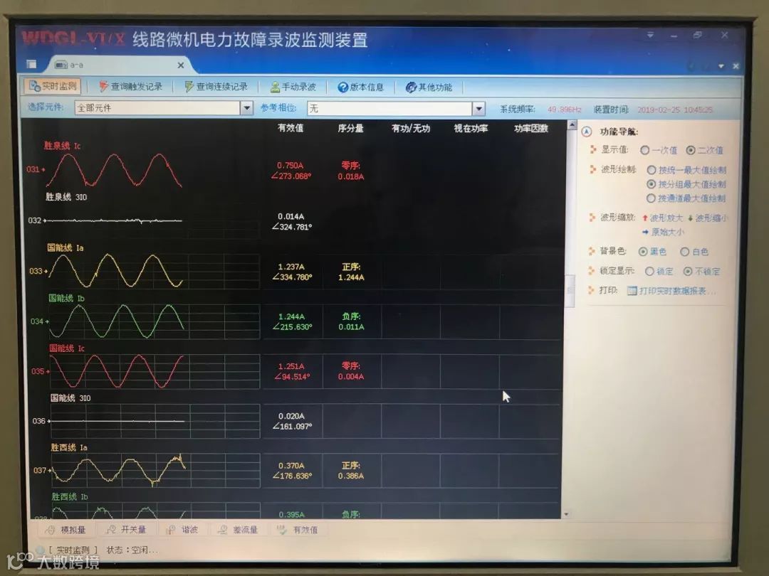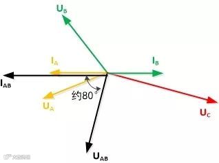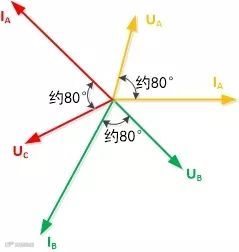 2、以某一相电压或电流的过零点为相位基准,查看故障前电流电压相位关系是否正确,是否为正相序,负荷角为多少度。