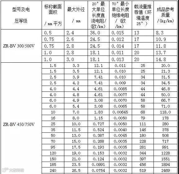 常见BV、BVVB、BVR、RVV、RVS系列阻燃电线电缆的载流量: