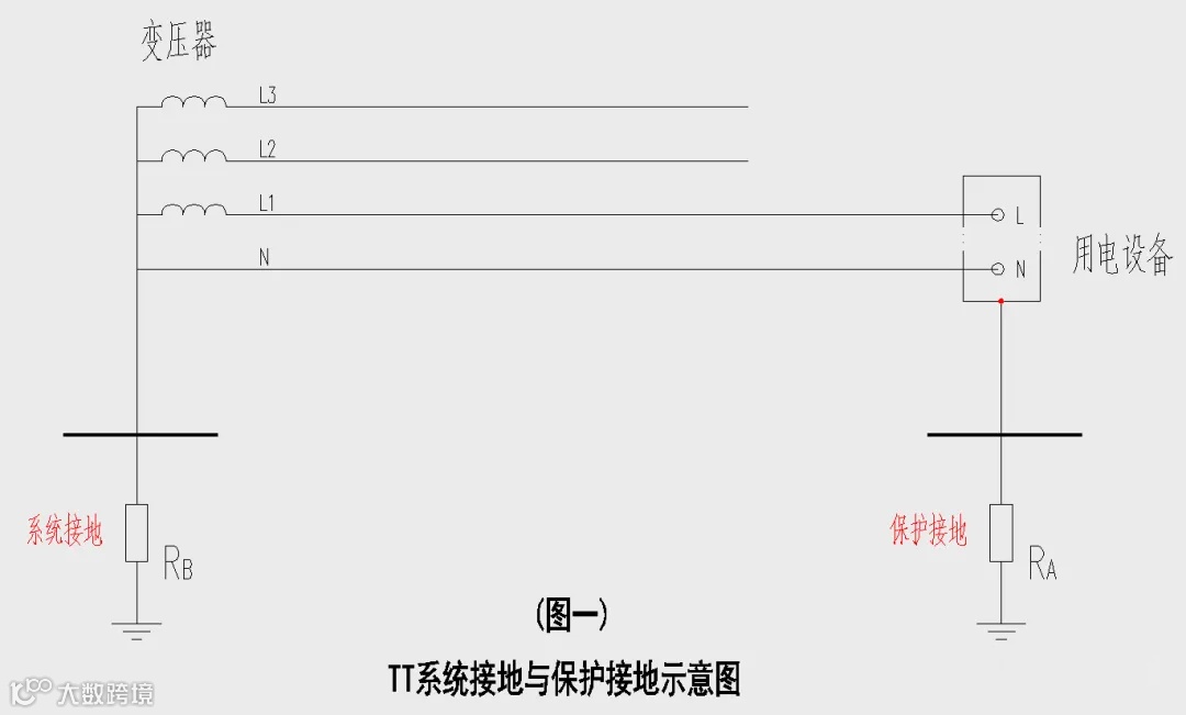“系统接地” 通常是变压器、发电机等中性点的接地,如(图一、图二)中的变压器绕组星形接点的接地。