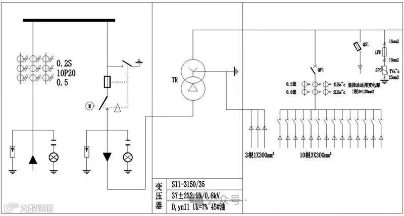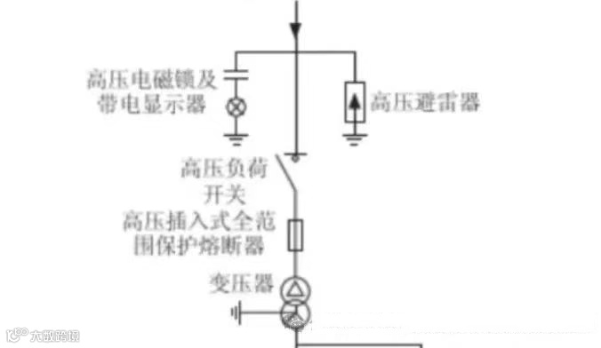 欧式箱变高压侧的型式:一种是采用负荷开关加限流熔断器,另一种是采用断路器设备;其低压侧采用负荷开关加限流熔断器;下图为欧式箱变高压侧配置负荷开关加熔断器的型式。