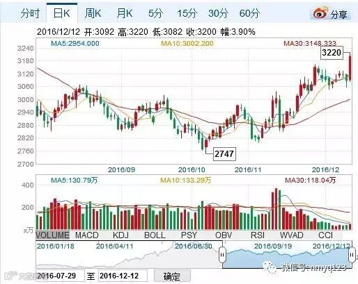 期货方面:鸡蛋主力合约(JD1701),今开3431元/千克,昨结3420元/千克,最高3475元/500千克,最低3425元/500千克,最新3471元/500千克,收涨1.49%,收盘成交约1.21万手,持仓2.83万手。