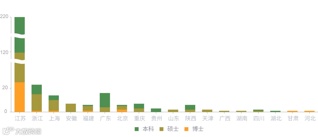 从毕业生生源看,2023届毕业生来自全国各地,但较为集中于东部地区。