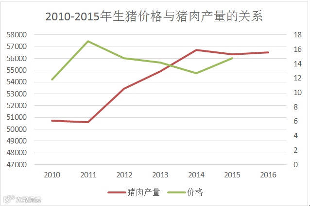 图3 2010-2015年生猪价格与猪肉产量的关系