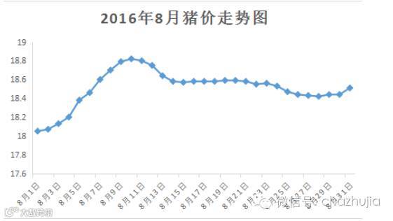8月伊始便一扫前两个月的跌势,猪价正式的开启了上涨的模式,这个时间持续了10天,上涨幅度达0.77元/kg。在8月11-15日期间,猪价小幅下跌,下跌0.25元/kg;之后8月16-28日猪价维持稳定,并略微有所下跌;月末时候猪价重新开启上涨。
