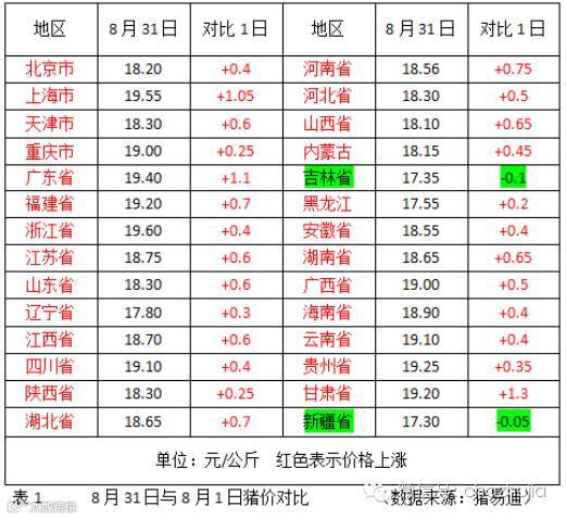 在8月跟踪的28个地区中,有26个地区猪价上涨,2个地区猪价下跌,均价上涨0.46元/kg,整体猪价上涨!