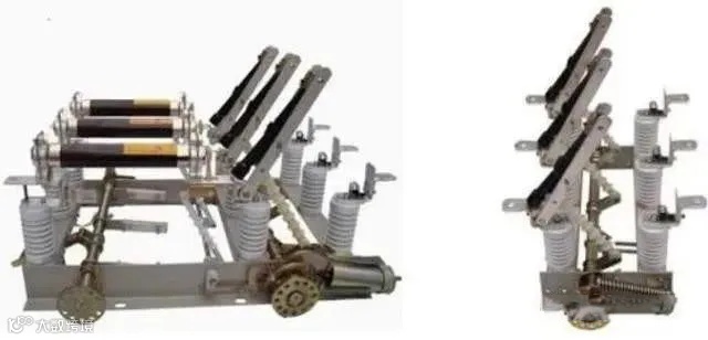 开关由底座、棒式支柱绝缘子、导电闸刀、左右触头和传动部分等组成,也称为V型隔离开关。根据需要该隔离开关可配装接地闸刀,广泛用于35~110kV电压等级中。