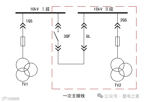对于双母线接线,同样的,当#1母线上的PT停运,也可以通过电压并列将#2母线PT的二次电压提供给#1母线上的线路的保护与计量装置。