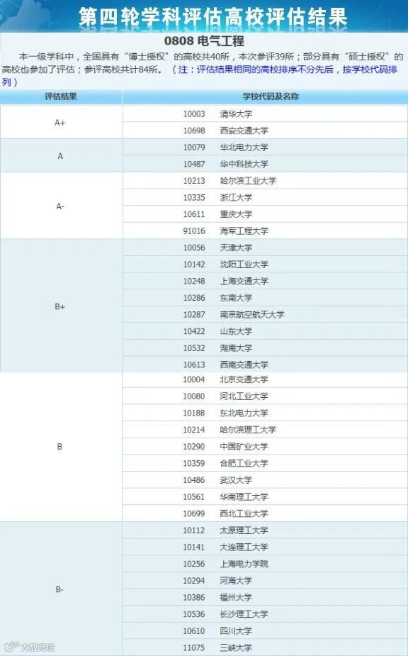 2017年12月28日,教育部公布了全国第四轮电气工程学科评估结果。由于第五轮还未公布,所以第四轮也是目前最新的比较权威的电气工程学科评估排名。