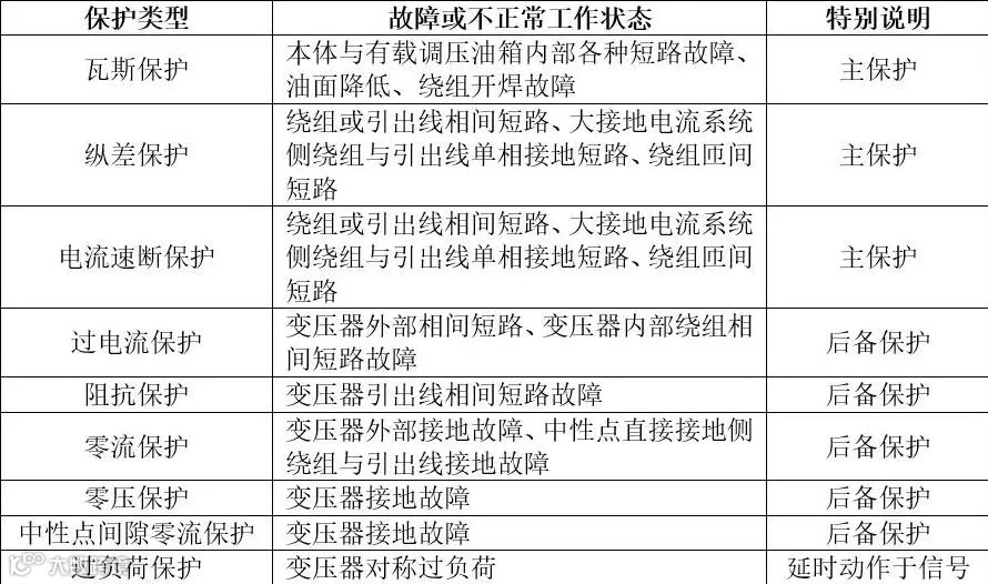 以上瓦斯保护属非电量保护的一种,非电量保护还包括本体与有载调压装置的油温保护、压力释放保护、风冷保护、过载闭锁带负荷调压保护。