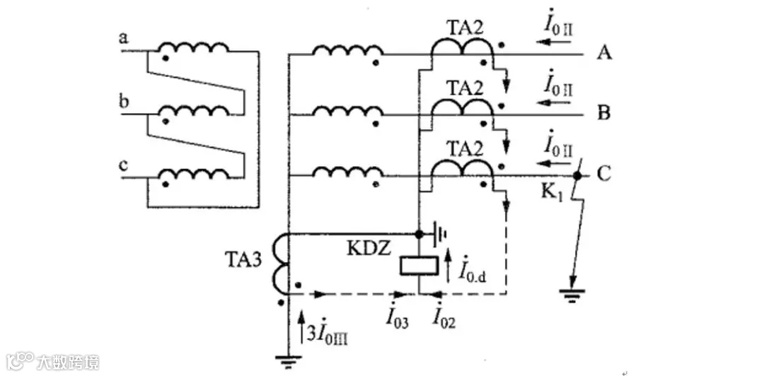 零序差动保护,由变压器中性点侧零序电流互感器和变压器星形侧电流互感器的零序回路构成。图6、图7分别为区外和区内发生接地故障时的电流回路。同样,该保护各二次电流没有电磁耦合关系,所以保护装置无需励磁涌流闭锁元件或过励磁闭锁元件;继保小家,一个学技术的公众号,同时对变压器绕组接地故障反应较灵敏。然而零序差动保护只能反映高中压侧内部接地故障,且不能保护匝间短路。