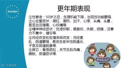 女性更年期由于激素水平下降导致一些列变化,主要表现为