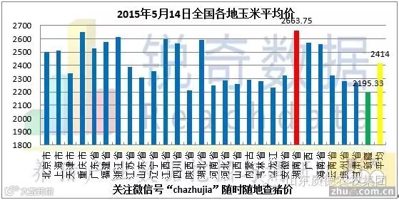 据猪e网锐奇数据检测当地玉米报价信息统计,2015年05月14日国内各地玉米平均价格为2414.00元/吨,较昨日(05月12日)2414.08元/吨下跌0.08元/吨。据此次检测的省市中,最高价格为湖南省2663.75元/吨,最低价格新疆省2195.33元/吨(以上价格均已换算成含水分为14%的标准玉米)。昨日山东地区玉米深加工企业收购价格继续呈现稳中上调,幅度在10-20元/吨。今日山东地区玉米深加工企业收购价格呈现震荡下调,幅度在10-20元/吨。山西地区玉米深加工企业收购价格呈现上调态势,幅度在10-20元/吨。今明(5月14、15日)两日将展开新一轮玉米拍卖,具体拍卖情况如下: