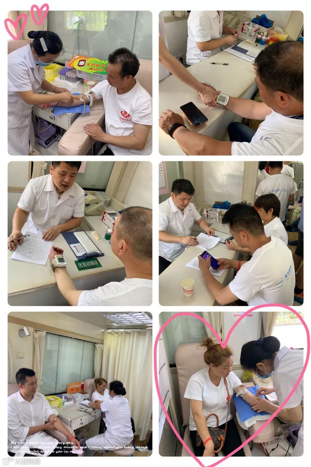 献血车里的气氛轻松欢畅,虽然大家年龄和经历各有不同,但是大家对献血的认识都是一样的,献血有量、爱心无限,大家身上折射出来相同的责任心和奉献精神,体现了弘扬真善美,崇尚良好社会风尚的高贵品质。