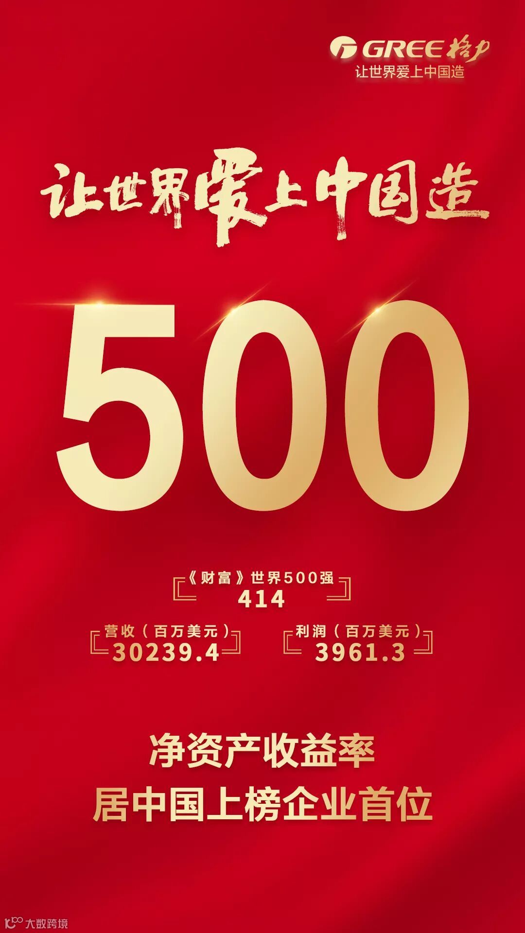 7月22日,2019年《财富》世界500强名单公布,格力电器凭借瞩目的营收成绩和创新能力强势上榜,位列榜单414位。在上榜世界500强榜单的129家中国企业中,格力电器的净资产收益率(ROE)居首位。