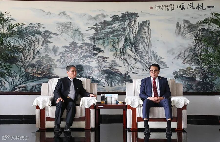 ▲安然公司董事长刘润东先生与韩医大学校长卞暢壎洽谈