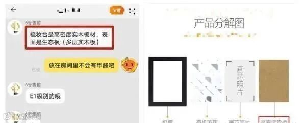 例如在某商家的口中,高甲醛风险的密度板成为了“纤维板”“高密度实木板”。