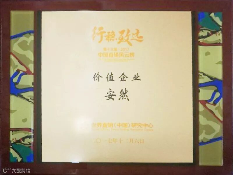 此次盛典现场,安然公司凭借超凡的表现以及在直销行业的不懈努力与坚持,将“2017年度中国直销价值企业奖”收入囊中。十余年的付出与沉淀,安然从小到大,从威海走向全国,已然成为颇具影响力、为无数人带来健康与幸福的民族直销企业,折射出安然深厚的爱·感恩文化理念。