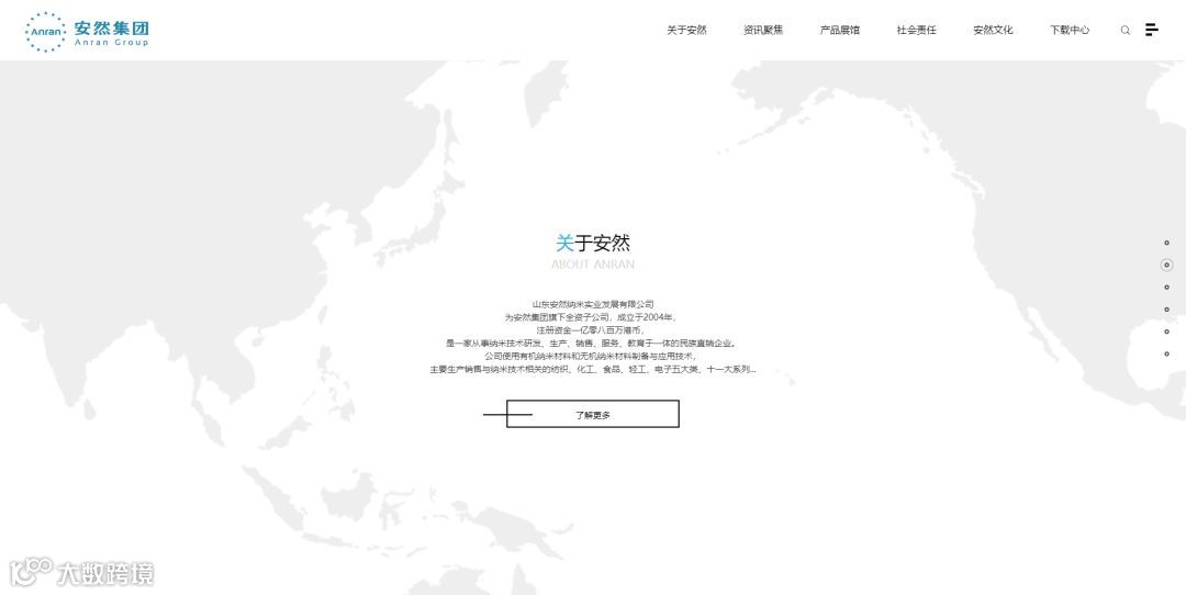 新官网更注重内容和设计的逻辑性和和谐性。经过重新整理后分为网站首页、关于安然、资讯聚焦、产品展馆、社会责任、安然文化、下载中心7个目录菜单,以更直观、全面、精准的视角,向大众展现安然集团的方方面面。