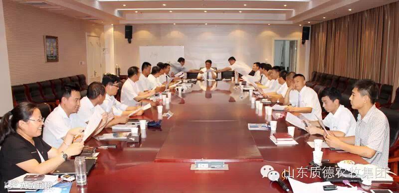 山东质德农牧集团6月份总经理会议于2014年6月30日在八一宾馆圆满召开。集团董事长翟长信先生、副总裁孙建龙先生、平原质德饲料有限公司总经理于光春先生、聊城卓邦饲料有限责任公司总经理朱全生先生、谢遵端先生、临沂质德饲料有限公司总经理韩书礼先生、翟长宏先生、沈阳质德饲料有限公司总经理苗子甫先生以及各营销公司总经理、各部门主要负责人参加了此次会议!