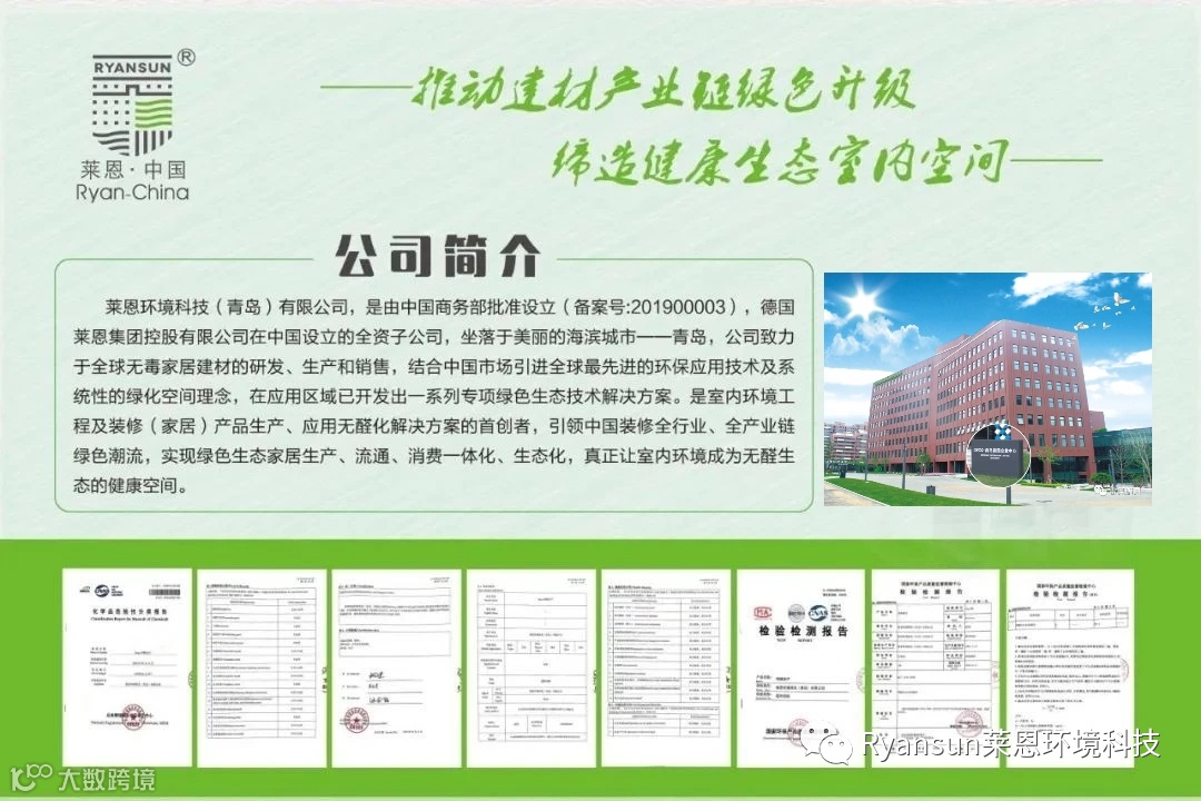 莱恩环境净醛质控技术,23年的技术沉淀,核心产品Ryansun®净醛因子,主要成分是活性生物蛋白酶,是国内唯一真正可在各维度中植入、能 360°解决装修污染的质控技术。