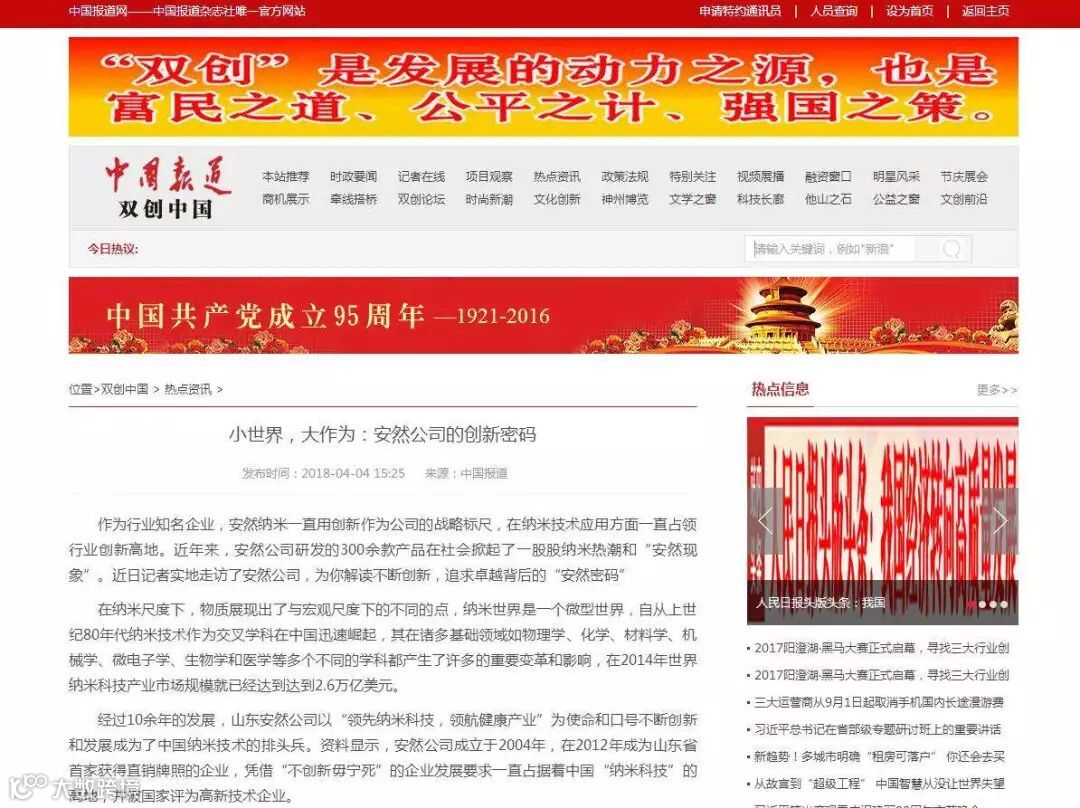 经过10余年的发展,山东安然公司以“领先纳米科技,领航健康产业”为使命和口号不断创新和发展成为了中国纳米技术的排头兵。资料显示,安然公司成立于2004年,在2012年成为山东省首家获得直销牌照的企业,凭借“不创新毋宁死”的企业发展要求一直占据着中国“纳米科技”的高地,并被国家评为高新技术企业。