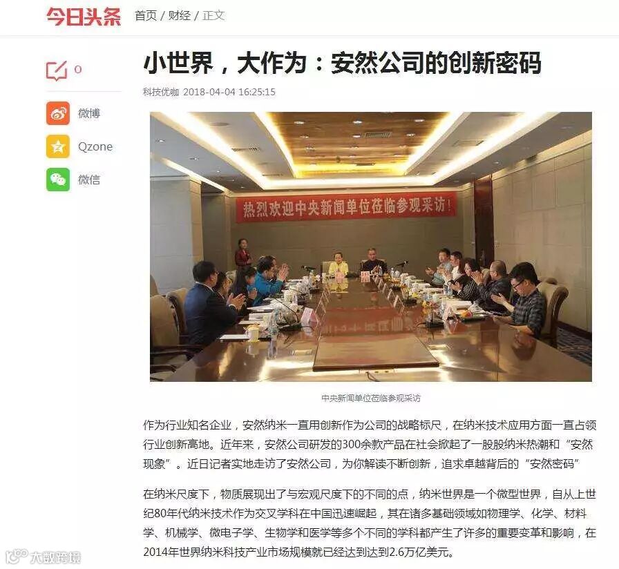 作为行业知名企业,安然纳米一直用创新作为公司的战略标尺,在纳米技术应用方面一直占领行业创新高地。近年来,安然公司研发的300余款产品在社会掀起了一股股纳米热潮和“安然现象”。近日记者实地走访了安然公司,为你解读不断创新,追求卓越背后的“安然密码”。