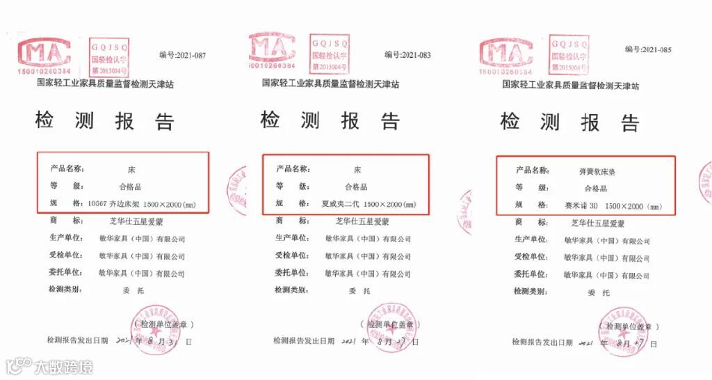 2021年1月,上海市市场监督管理局也查出“重庆敏华品牌管理有限公司”在某电商平台“芝华仕旗舰店”销售的标称由“敏华品牌管理(天津)有限公司”生产(或供货)的“芝华仕”牌婴儿床,“其床板和床头的各项实测值均与标准要求不符”。