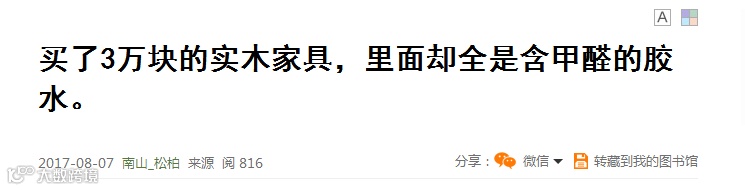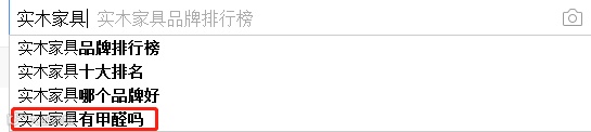 在度娘搜索“实木家具”,出现的联想词条中有一个“实木家具有甲醛吗”。可见,很多人已经对“实木家具不含甲醛”的说法产生了怀疑。
