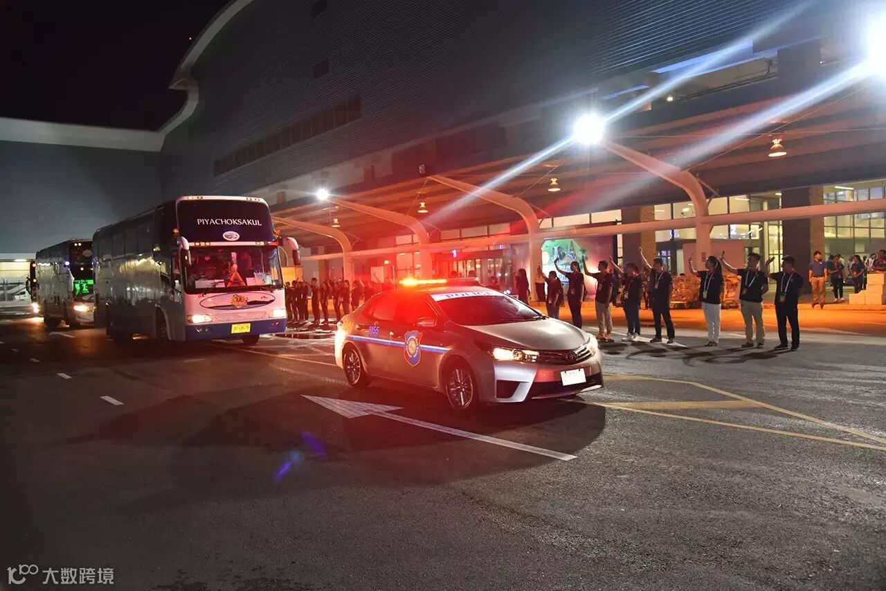 尊贵的安然伙伴刚下飞机就受到了隆重的欢迎仪式,刚刚走出机场大厅,身着泰国特色服装的姑娘就热情地前来迎接,并送上欢迎的花环和精致的礼物。普吉岛当局领导高度重视,并安排了最高级别的安保力量,警车开道,警察护卫,确保伙伴们的安全。