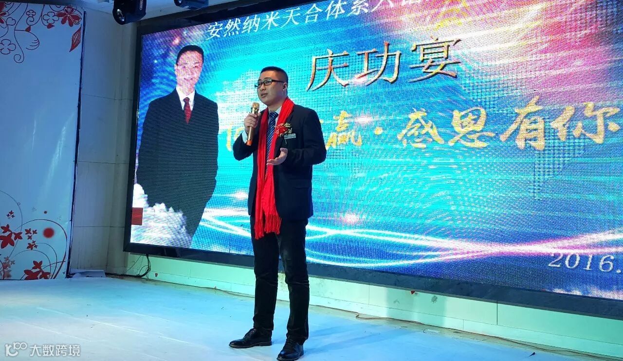 杨勇先生上台接受表彰并分享,讲述自己从事安然事业的经历,一步一个脚印,稳步前进,努力奋斗实现梦想,实现自己的价值。台下的伙伴们认真倾听,充满希望与力量。