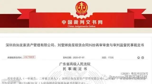 本文说的是中国裁判文书网于7月7日公布的一则关于长租公寓运营商“自如”的再审裁定。法院驳回了自如再审的申请,判定自如公寓需要就甲醛超标问题支付租客赔偿金,此案自2019年1月12日至至2020年6月15日,耗时一年半,终于落下帷幕。