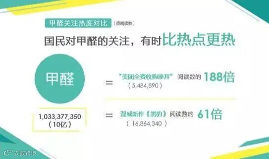从头条阅读量来看,甲醛的国民关注度堪称热点。“甲醛”这一关键词拥有超过10亿阅读量的,是漫威新作《黑豹》阅读数的61倍,更是“美团全资收购摩拜”阅读数的188倍。