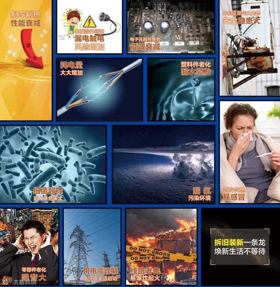 超期服役的老旧空调,在使用过程中,空调机内的过滤网以及散热片会累积大量的灰尘,不但容易滋生细菌,吹出的空调风有很大的异味,而且对室内环境也会造成不同程度的污染,长此以往,对人体的呼吸系统难免会产生威胁。