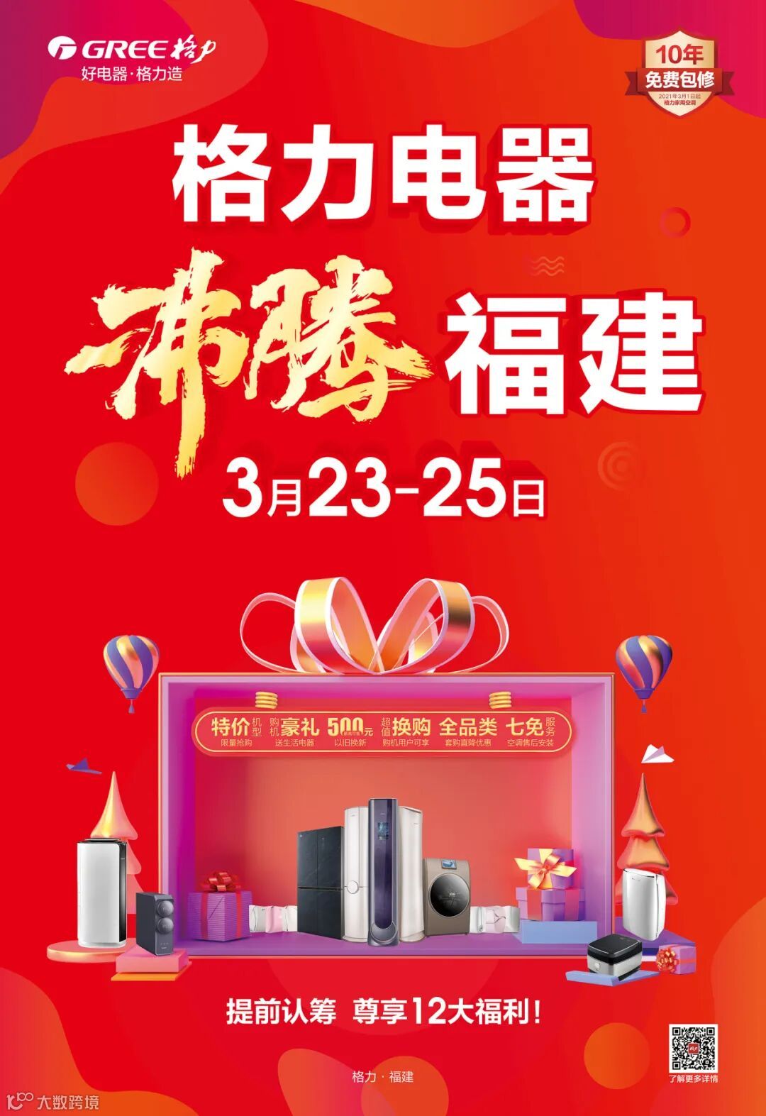 3、用户在“格力福建董明珠店”抖音直播间进行抽奖,3月份每周五15:00-17:00直播,同一账号、同一地址数量限一台(仅限厦门除外的福建省格力用户)。