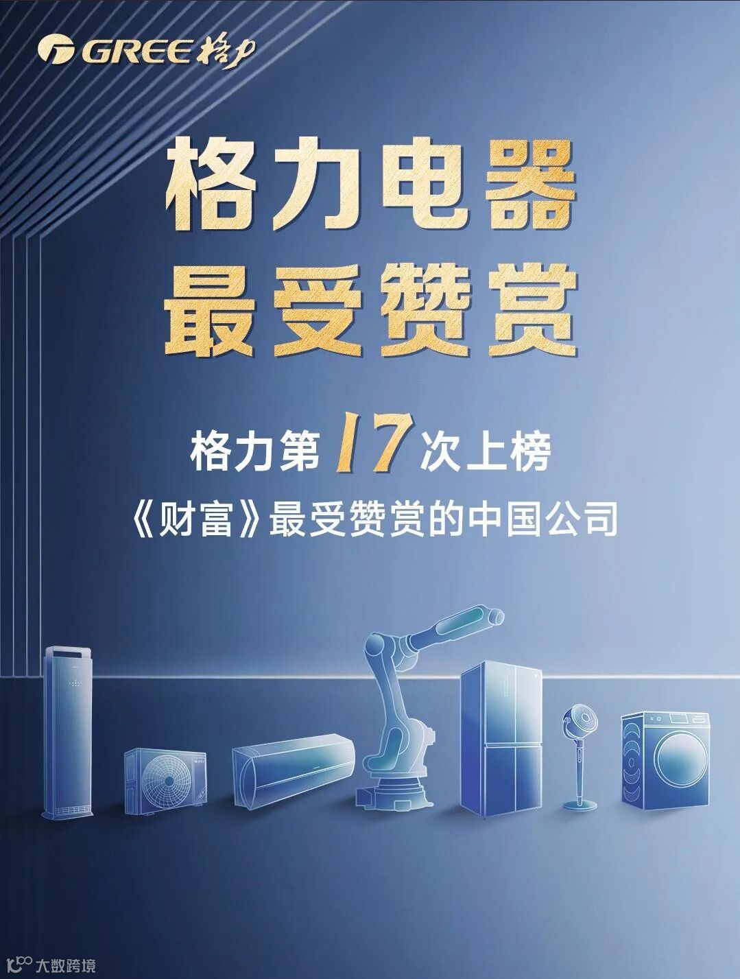 11月5日,2024年《财富》最受赞赏的中国公司榜单发布,格力电器第17次上榜。《财富》最受赞赏的中国公司榜单体现了中国企业群体的“软实力”。“软实力”包括但不限于管理、人才吸引力、产品或服务、社会责任、投资价值、资产和全球化等方面的能力。榜单是对格力电器的肯定;上榜的背后,更是格力电器坚守“让世界爱上中国造”使命下的厚积薄发。