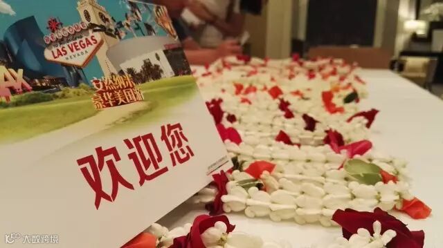 1席总发放公司为大家准备的美元红包和幸运花环