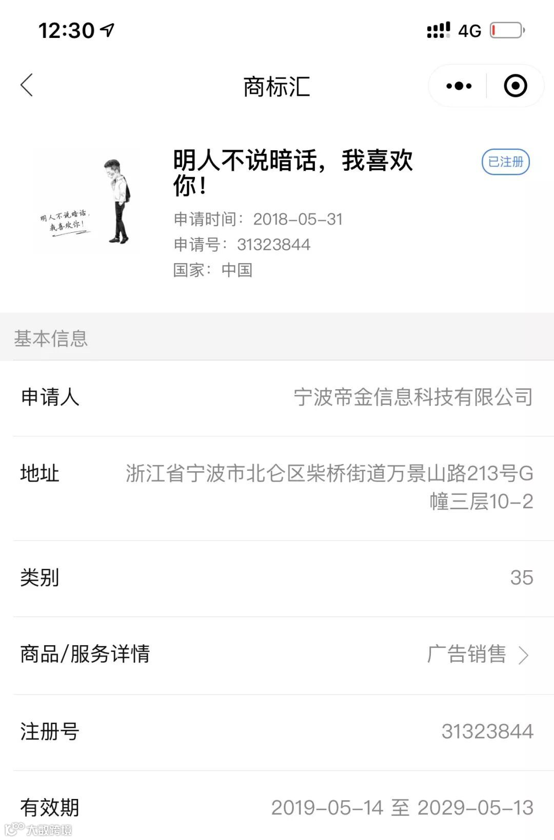 通过2019年2月28日在中国商标网检索发现,“土味情话”商标申请的递交,多集中在2018年的5月、6月和7月间,共计14件商标,商品和服务多集中25类、29类、30类、31类、32类、33类、35类、38类等多个类别。2019年暂未有递交的商标申请。除了“土味情话”,另外还有2件名为“土味情话 HI”的商标申请。