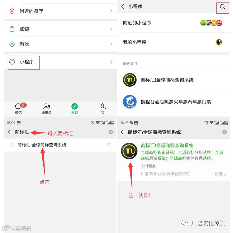 我们只需在微信里的小程序里搜索“商标汇”,就可以快速查询到相关的商标信息了,如上所示。