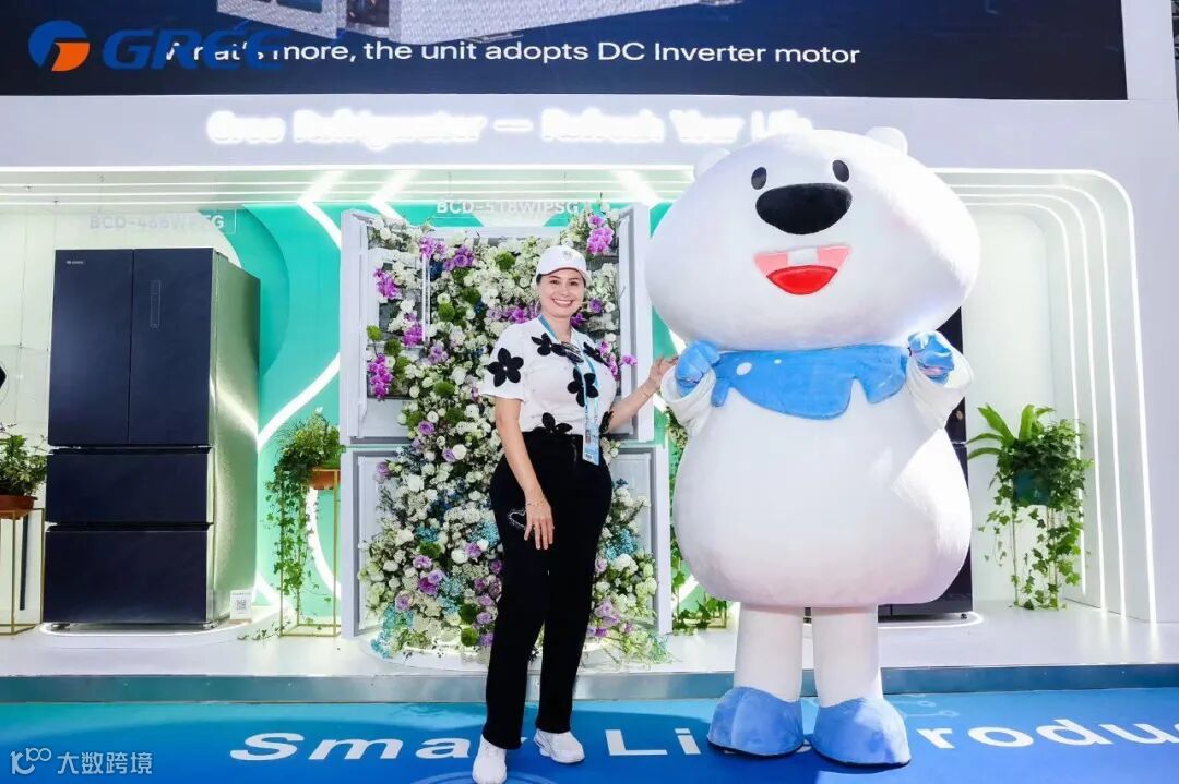 在格力展位现场,位于“C位”的“鲜花级”保鲜冰箱吸引众多客商驻足询问。