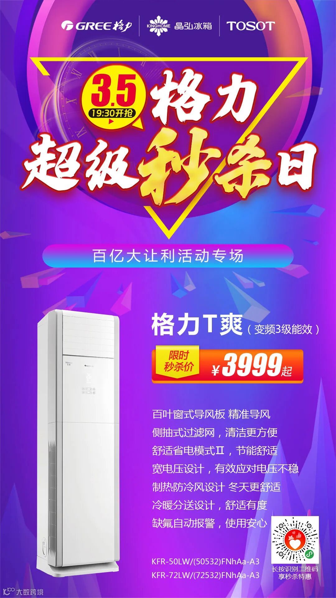 3999元秒杀格力大2P变频柜机
