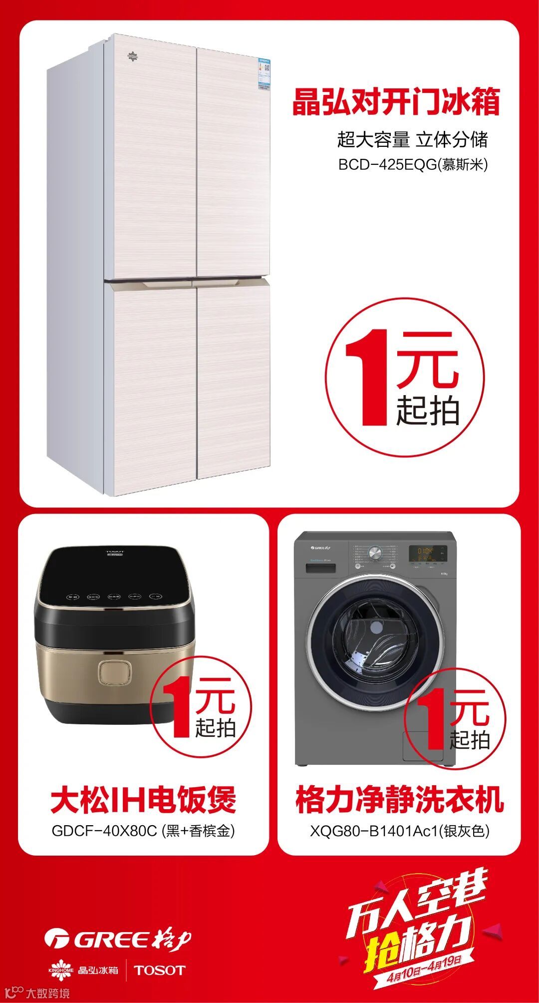 晶弘冰箱1元起拍