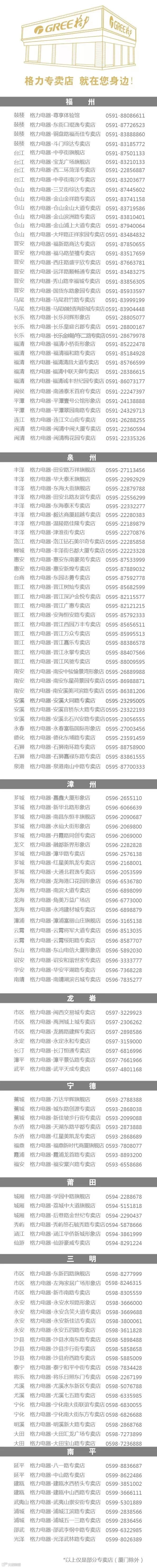 详询福建省各格力专卖店、卖场专柜
