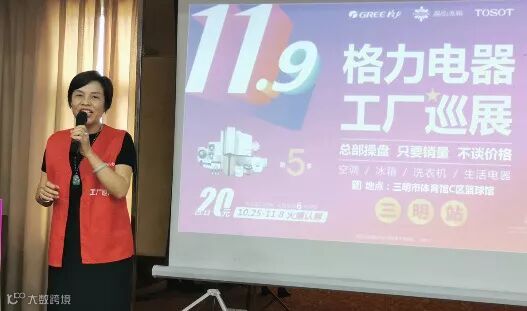三明市格力空调销售有限公司董事长叶爱娟女士进行开场讲话,她为分销商及全体销售人员鼓舞士气,要求全员在巡展期间用最好的状态来奋斗,实现自我超越。